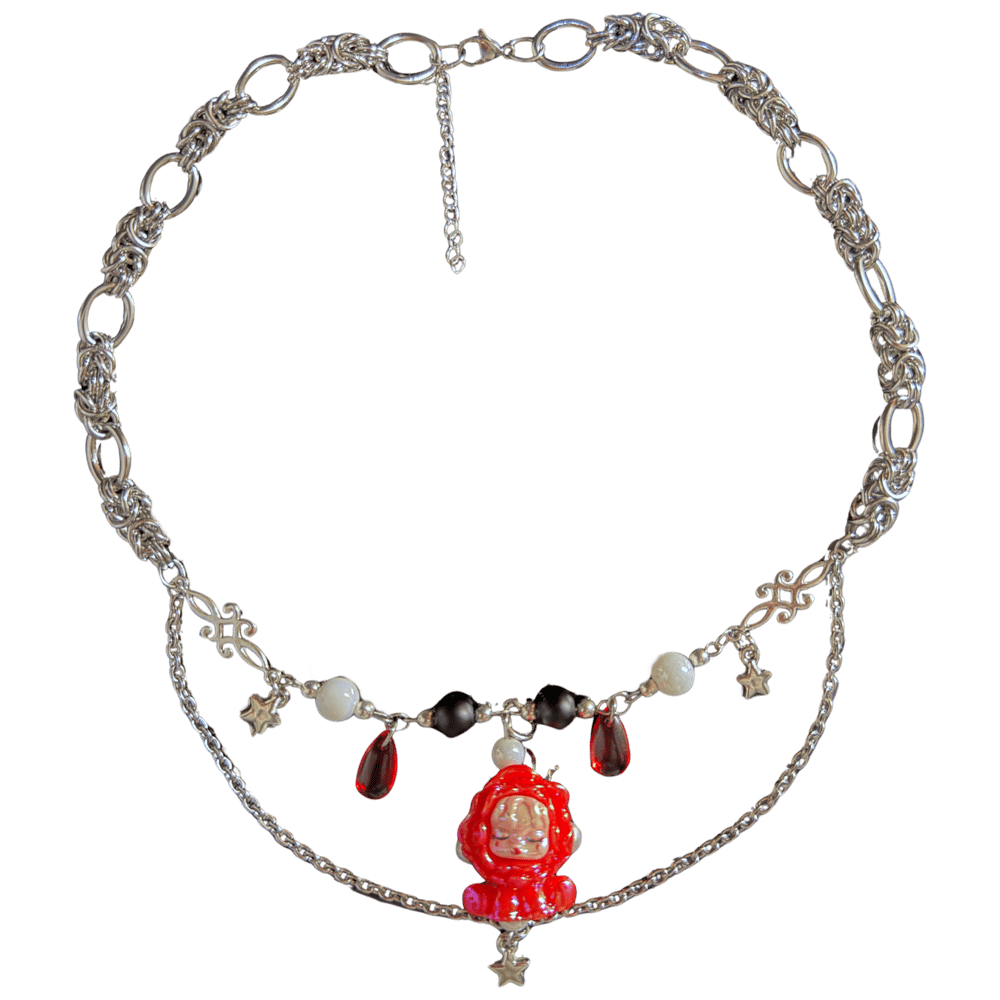 Features : Cute red charm Stainless steel connectors Stainless steel chains Adjustable chain for perfect fit Star silver charms and red drop charms